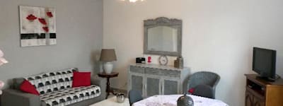 Très bel appartement calme, lumineux (exposé Sud/Sud Est), tout confort au 1er étage d'une petite résidence, classé 3 étoiles avec parking privé en plein centre ville, à 2 min des thermes, à 5 min de la Voie Verte .
